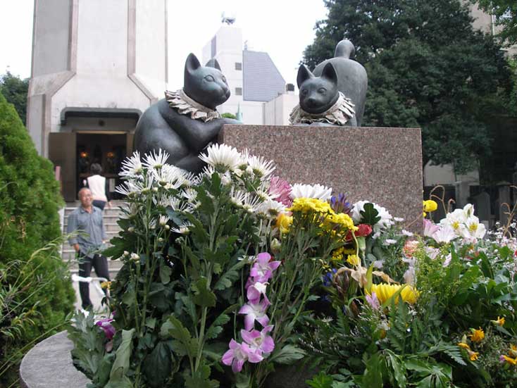 ニャーは、東京都墨田区の両国駅近くにある、 回向院の墓地で眠っています。 回向院は、振袖火事(ふりそでかじ)と呼ばれる 明暦の大火(明暦3年 = 1657年)の焼死者 10万8千人を幕命(当時の将軍は徳川家綱)に よって葬った万人塚が始まりです。 のちに安政大地震をはじめ、水死者や焼死者・ 刑死者など横死者の無縁仏も埋葬するように なったそうです。 |
